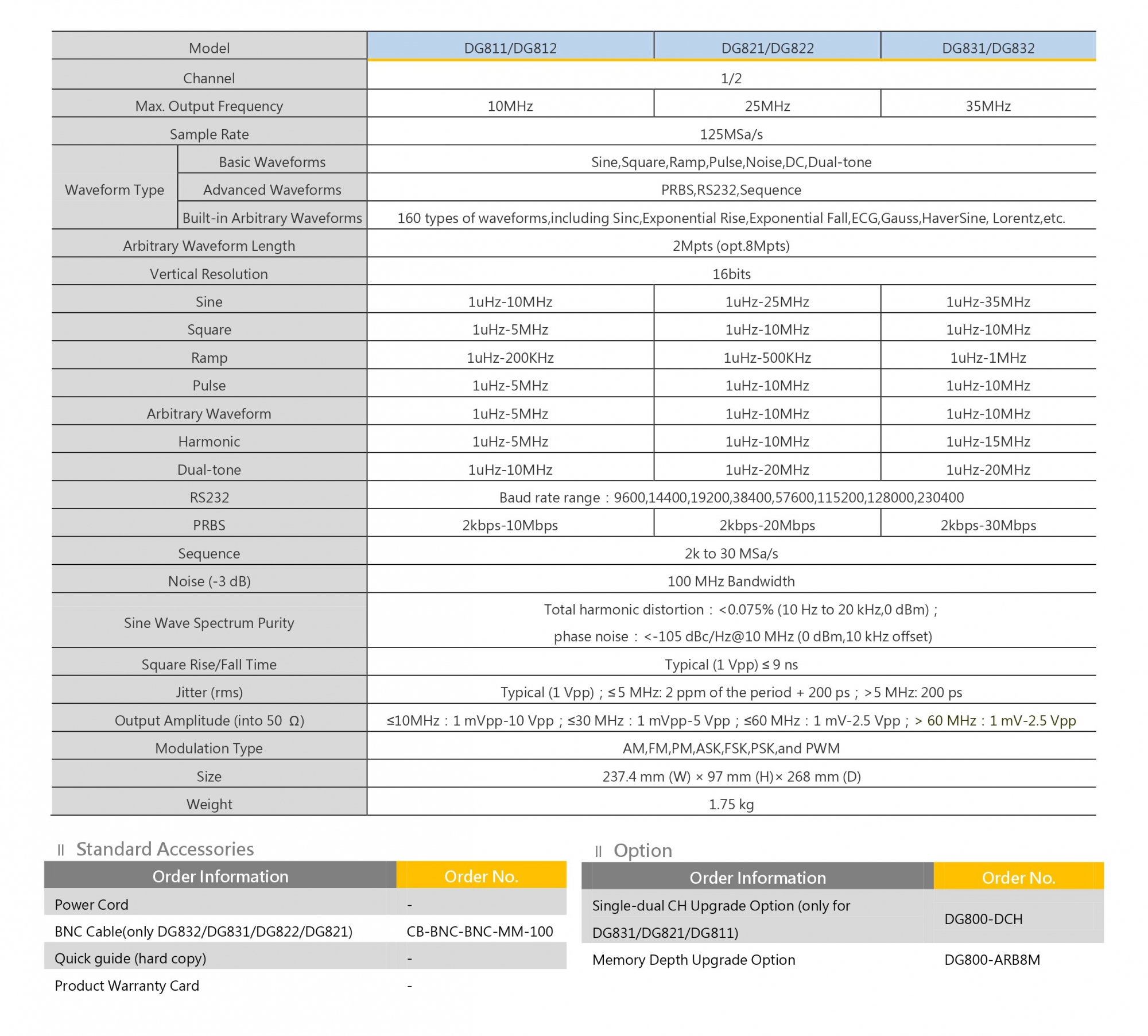 產品特色: DG812為我們最經濟實惠的波形產生器系列提供16位元高解析度、直覺式觸控螢幕控制、以及安靜無風扇設計等先進功能、重新定義入門級波形產生器。 • 獨創的SiFi(Signal Fidelity 2)技術:逐點生成任意波形,不失真還原訊號,取樣率精確可調,所有輸 出波形(包括:方波、脈衝等)抖動低至200ps